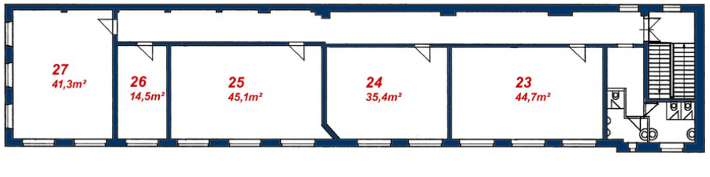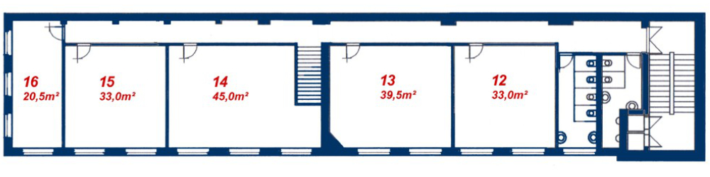 Die Ateliers variieren von 13 m² bis 87 m², die meisten um 40 m² . Zum Atelierhaus gibt es einen separaten Zugang von der Straße.